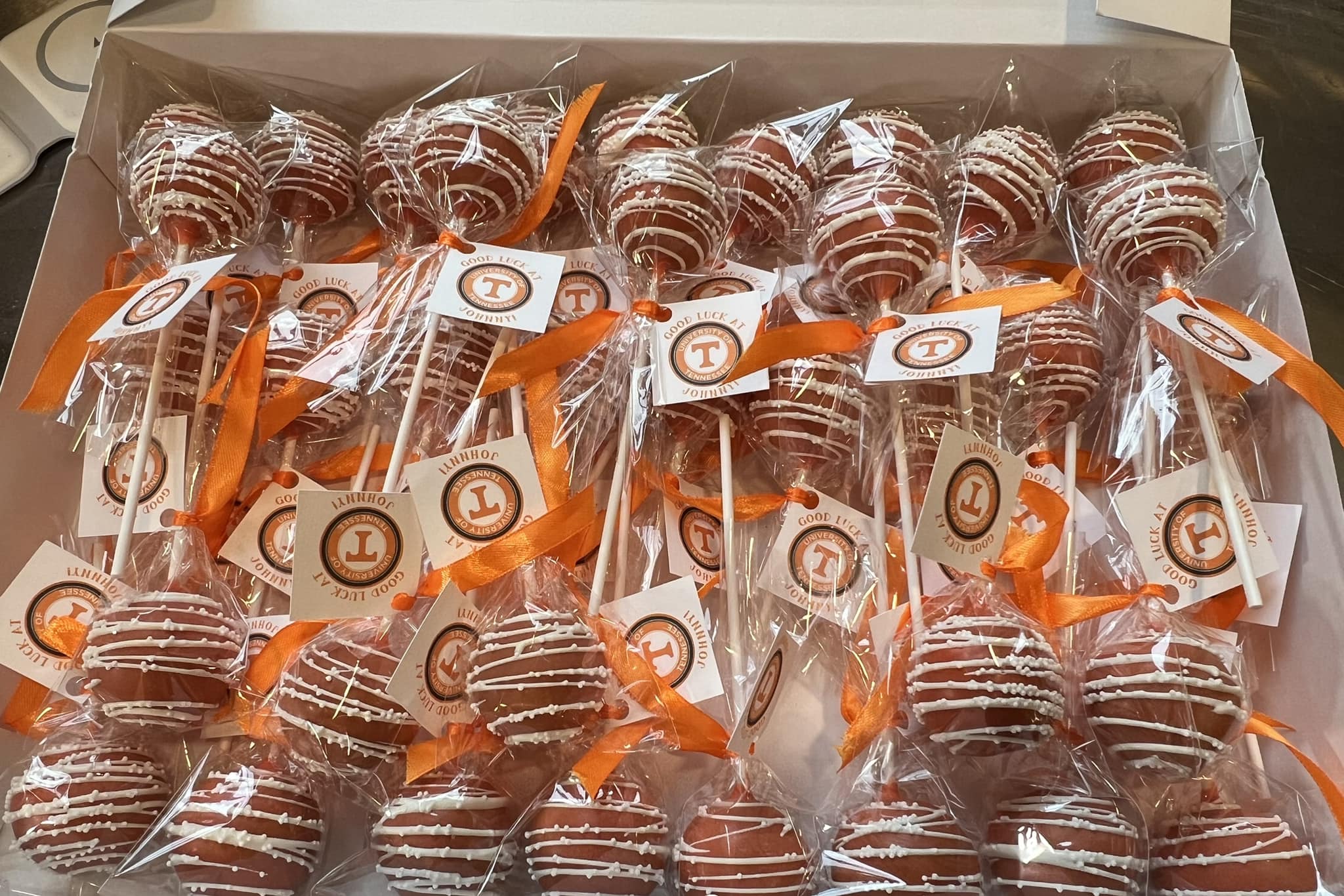 Irresistible bites of cake dipped in chocolate and customized with your favorite colors or party theme! You won’t be able to have just one!