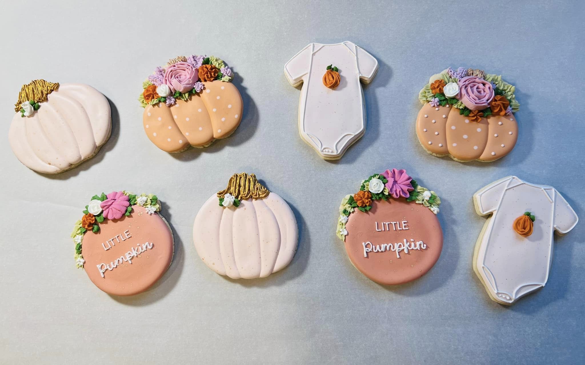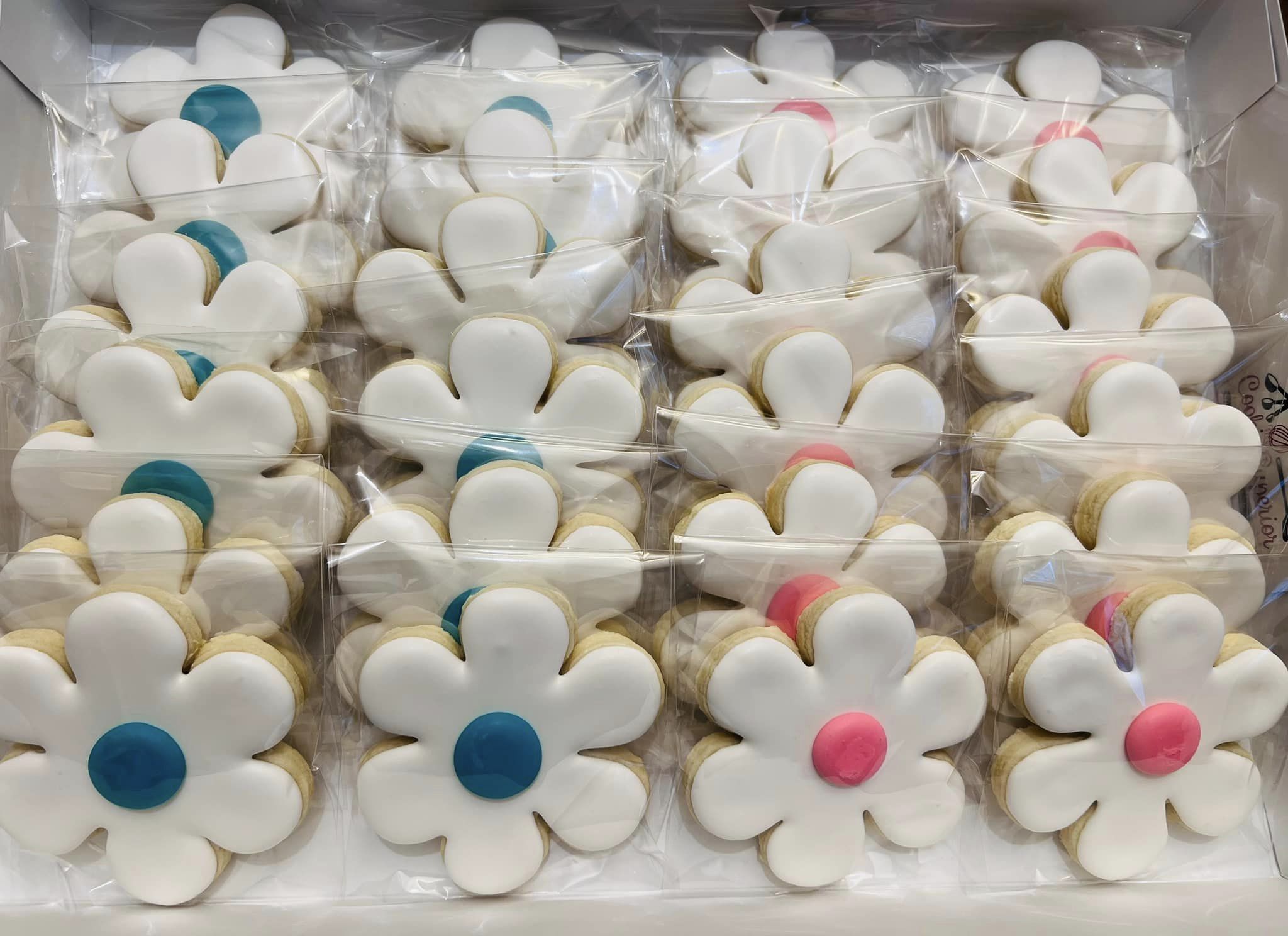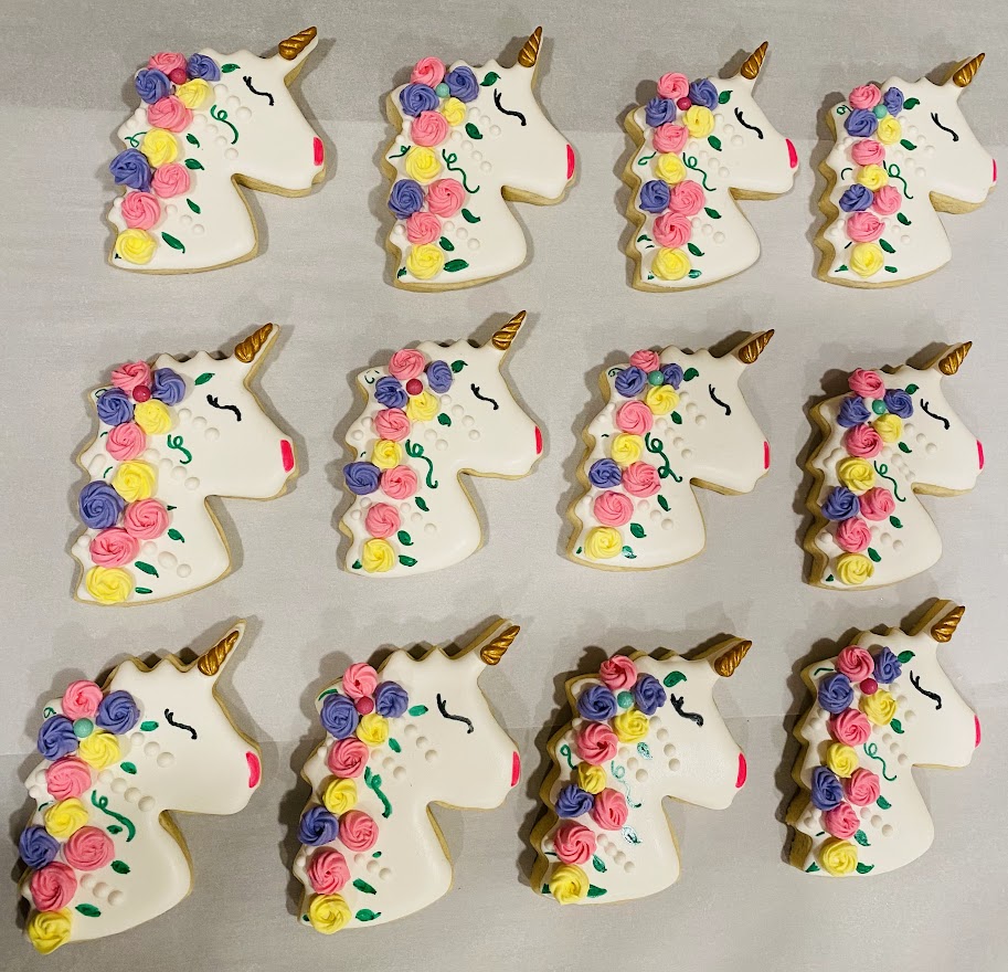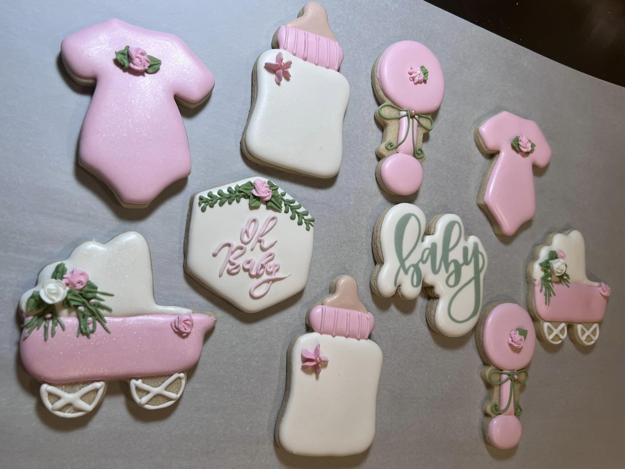 Custom iced sugar cookies start at $53 per dozen. Contact to customize your order. Pricing varies based on number of designs and colors. One dozen minimum order.