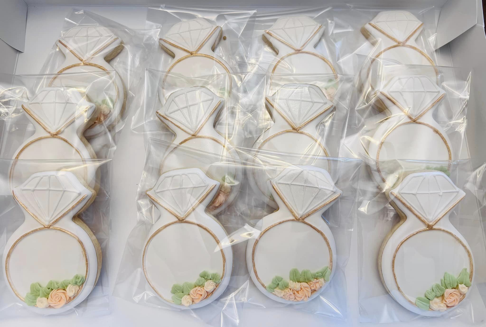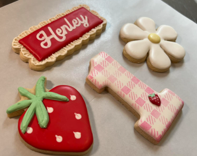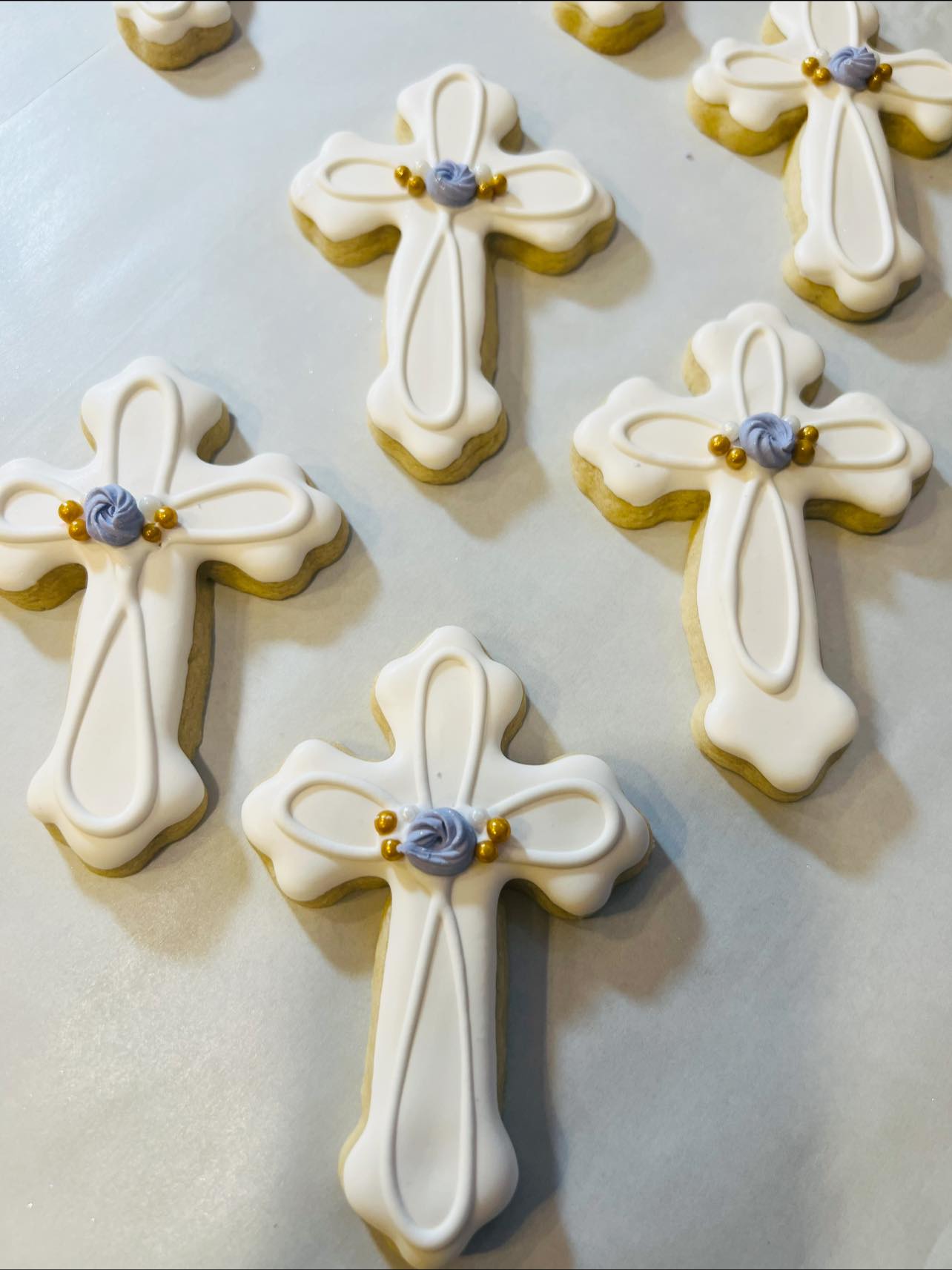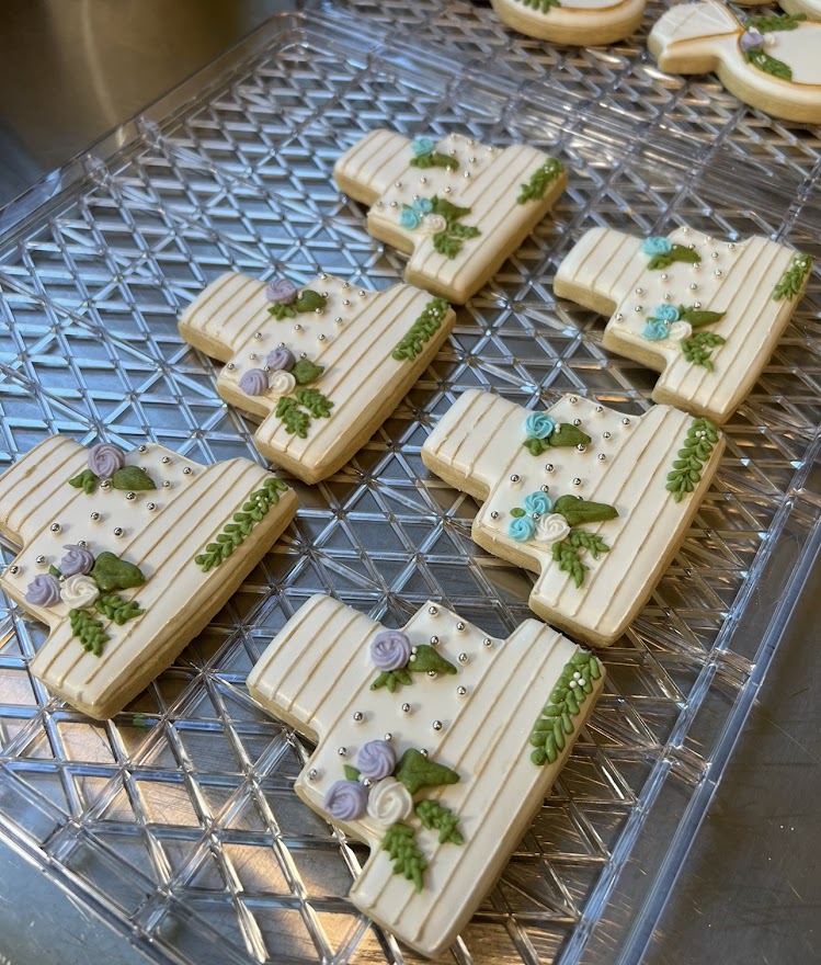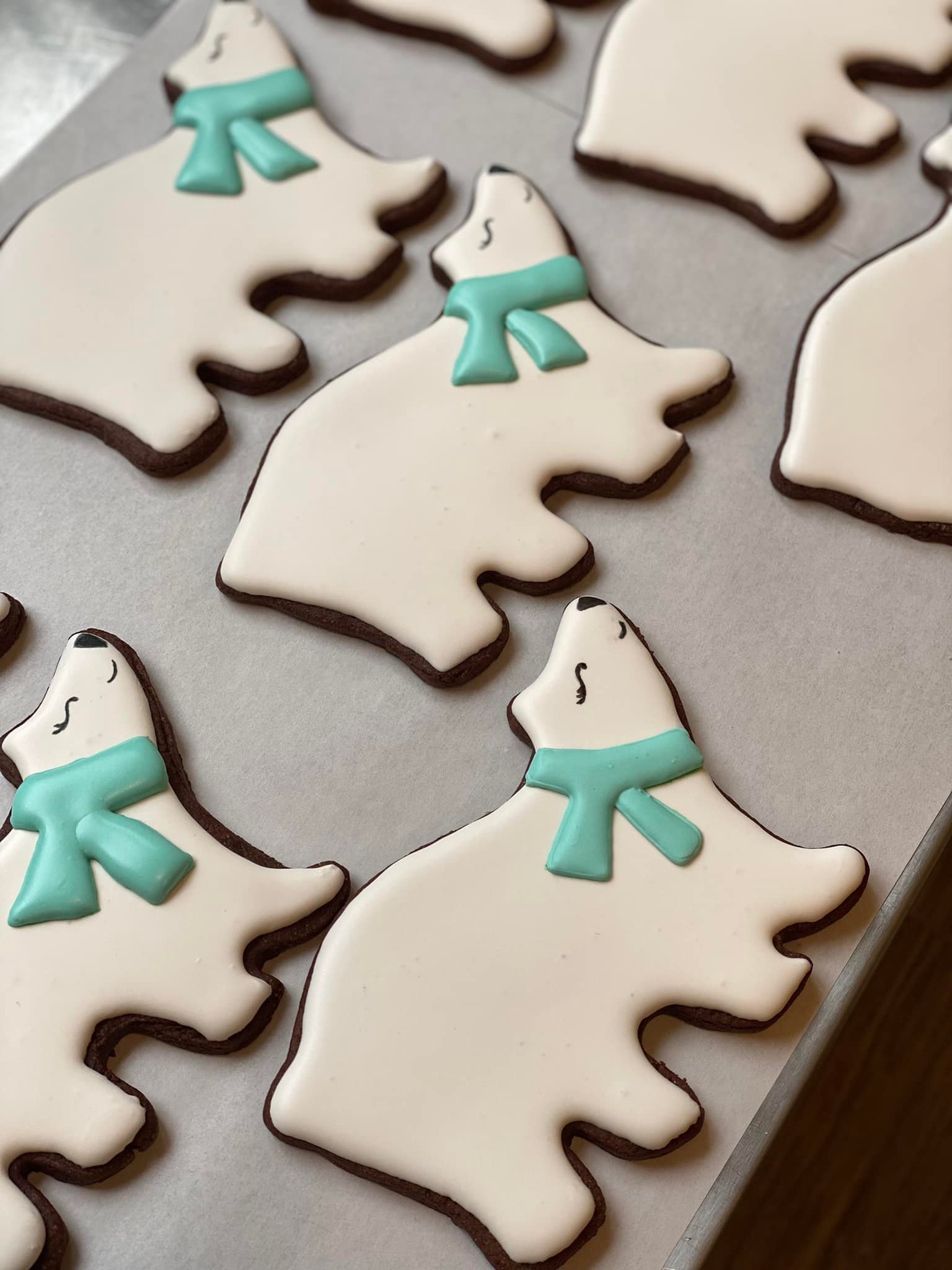 Custom iced sugar cookies start at $53 per dozen. Contact to customize your order. Pricing varies based on number of designs and colors. One dozen minimum order.